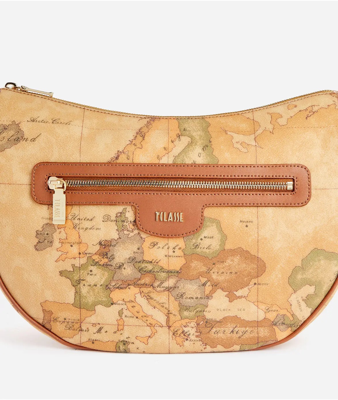 L’attitude urban e funzionale della tracolla a mezzaluna guadagna un’eleganza iconica grazie al tessuto Geo Classic, abbinato ai dettagli in pelle liscia e alla tracolla regolabile in nastro logato. I volumi capienti, suddivisi in più tasche, e la tasca frontale chiusa con zip consentono di tenere ben organizzati tutti gli oggetti essenziali nel quotidiano. Il logo 1ᴬ Classe in oro chiaro completa il design con una nota luminosa.