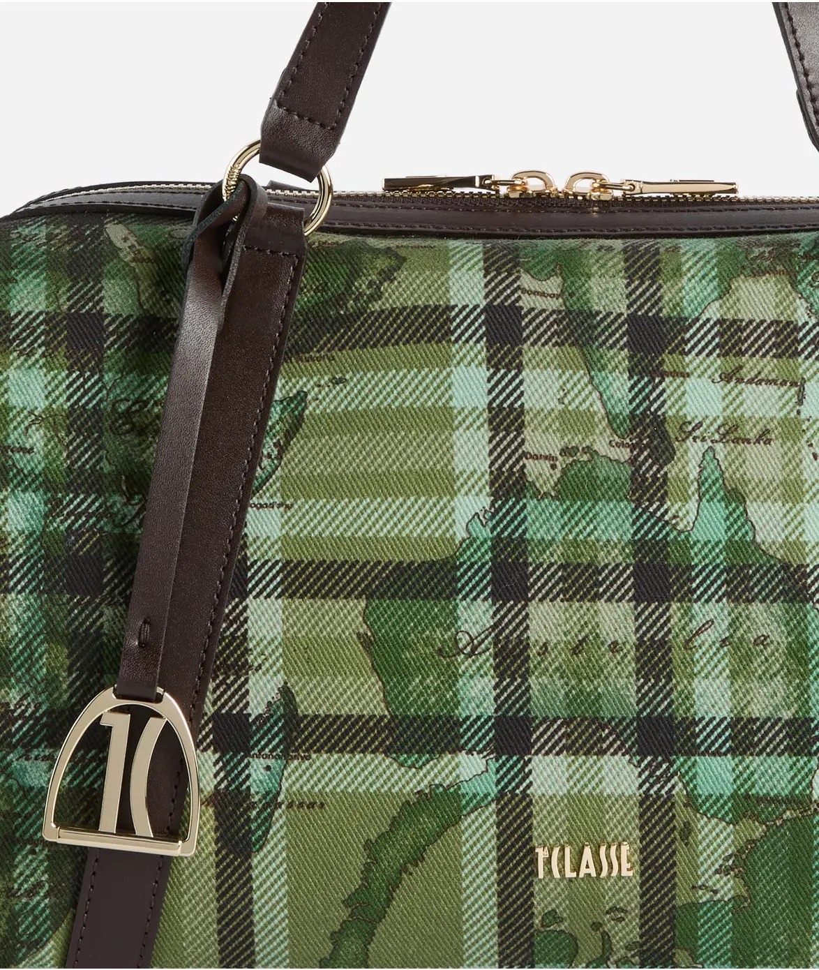 Il bauletto Tartan Soul esibisce il nuovo tessuto Geo Tartan, portavoce dell’identità della Collezione: l’iconica mappa Geo si tinge di note Verde Muschio e si abbina al tartan dei clan scozzesi, in un look scenico ed evocativo che esalta la filosofia del brand. Il morbido cotone tramato è impreziosito dal logo in oro chiaro e da dettagli in pelle liscia, tra cui il nuovo pendente con staffa in oro chiaro logata 1C. Chiuso con doppia zip e completato dalle tasche interne, è provvisto di tracolla rimovibile in pelle liscia: una combinazione vincente di grinta e originalità che renderà unici i look invernali.