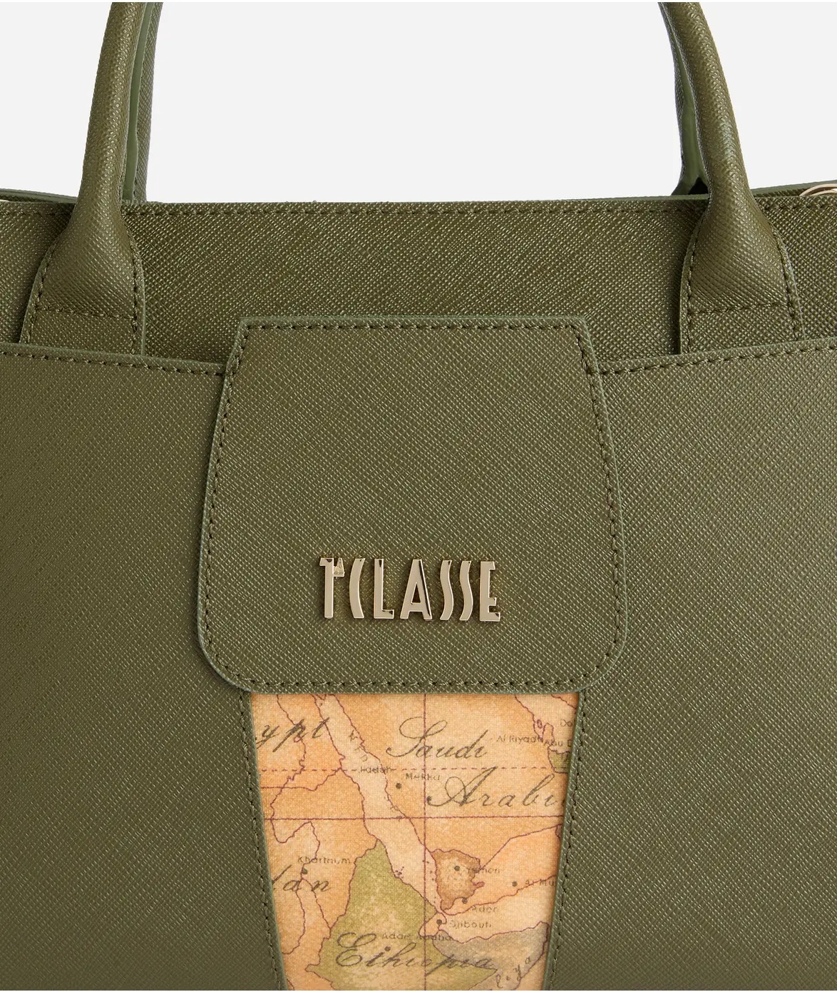 Compatta e spaziosa, la borsa a mano piccola Windy City in tessuto saffiano si avvale di due scomparti completi di tasche interne e offre una doppia portabilità grazie alla tracolla rimovibile. Il design interpreta in chiave minimal l’architettura delle città scozzesi: la toppa sagomata con maxi logo 1ᴬ Classe sovrasta la banda in tessuto Geo Classic, richiamando le finestre dei palazzi, e si apre su una tasca piatta frontale. Il profondo color Verde Muschio la rende distintiva, ideale da abbinare ai cappotti di Collezione per look che catturano il fascino dell’autunno.